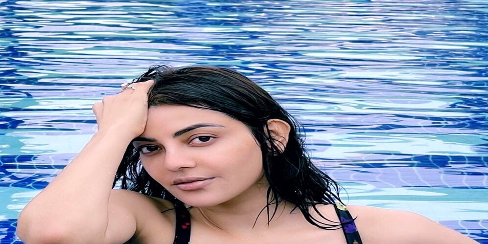 Kajal Aggarwal quite surprising bikini when she was seen in a swimming pool during her vacation with friends and family.