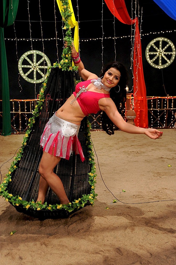 Thick and thunderous Bhojpuri actress Madhu Sharma hot item song stills from Telugu film.